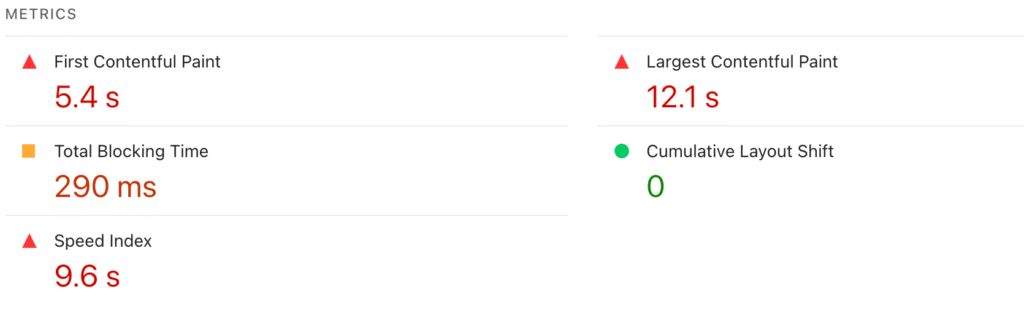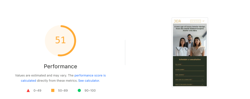 Jea’s LCP on mobile is 12.1s — way above Google’s recommended 2.5s, affecting both SEO & first impressions.